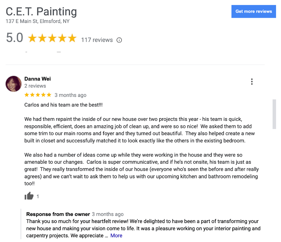 Since 2004, C.E.T. Painting has earned a reputation throughout Westchester County for painting services with quality work at reasonable prices, establishing itself as a premier full-service painting company. Responding to numerous requests from homeowners and businesses in the Golden Apple, we expanded our services. Recognizing the demand for reliable painting contractors in New York, we completed the licensing application in 2022 to bring our expertise to commercial properties and residential and commercial projects throughout New York City.